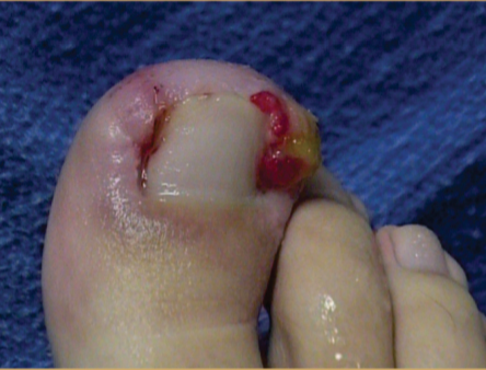 El paciente no requiere incapacidad, y puede usar el calzado normalmente. Requiere hacerse curaciones o lavado del dedo afectado en casa durante algunos días.